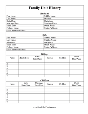 Family History Record OpenOffice Template